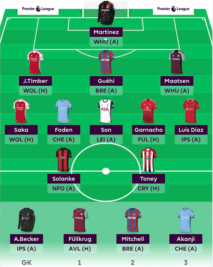Parker’s team is rounded out with recent FPL heavyweights in the form of Bryan Mbeumo and Jarrod Bowen, as well as reliable operators such as Gibbs-White and David Raya. Dependable, if not the creme de la creme.