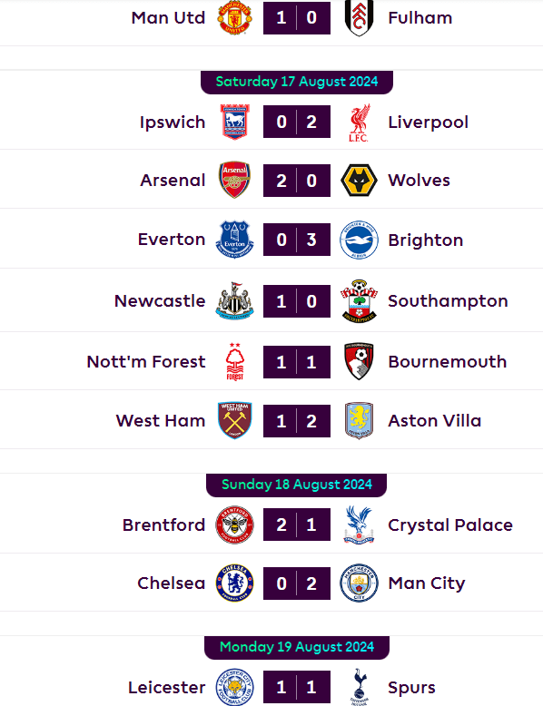 Gameweek 1 full-time scores